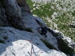 Debutto arrampicatorio dello Spera in Presolana su una via molto carina con roccia veramente fantastica. Se la cava alla grande...........che livello!!!!!!