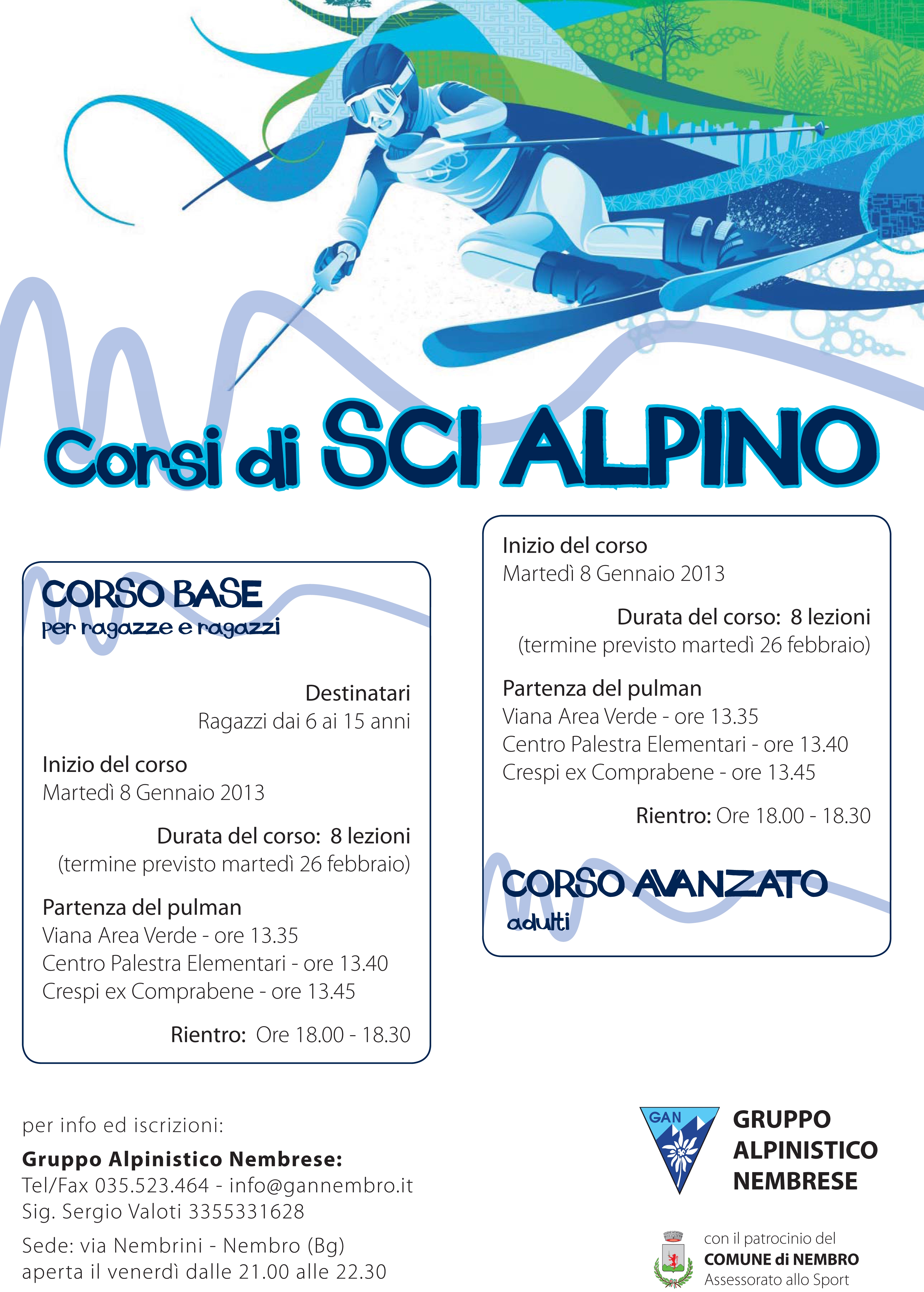 Sono aperte le iscrizioni per il corso di sci alpino che avra' inizio gennaio 2013 .
